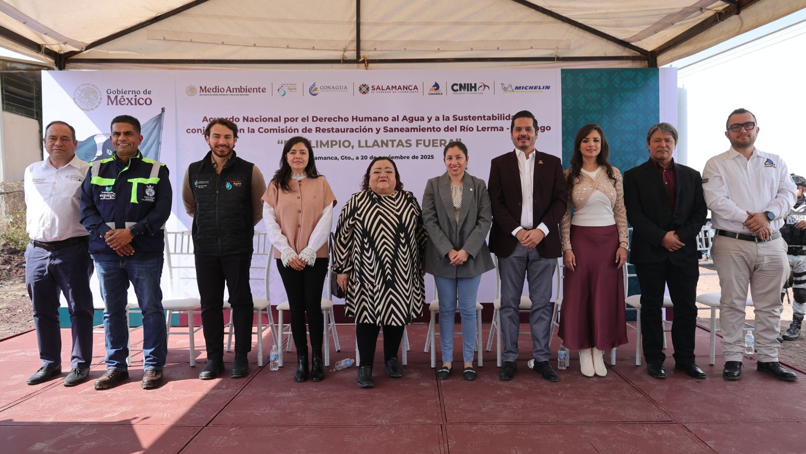 En este acto estuvieron presentes la Lic. Eugenia Martínez Carrillo, presidenta del Sistema DIF Salamanca; el Mtro. Aymir Moreno Maza, en representación de la Coordinación General del Acuerdo Nacional por el Derecho Humano al Agua y la Sustentabilidad; la Mtra. Valeria Guillermina Valdez Muñoz, gerente de Asuntos Públicos de Michelin; el Ing. Ángel Ernesto Ortega Mata, director local de CONAGUA en Guanajuato; la Mtra. Adriana Montelongo Jaime, directora general de la Cámara Nacional de la Industria Hulera (CNIH); el Ing. Isaías Lugo Miranda, en representación de la oficina de SEMARNAT en Guanajuato; así como el Ing. Héctor Javier Morales Ramírez, secretario de Vinculación Hídrica del Gobierno del Estado, y servidores públicos municipales.