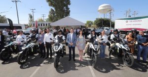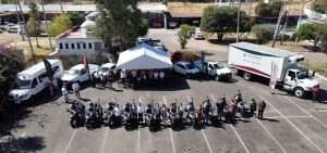 Los vehículos entregados incluyen un camión con caja refrigerada, una camioneta tipo Van para 21 pasajeros, cuatro camionetas de doble cabina y diez motocicletas, entre ellas una especial de unidad de género, con una inversión total de $7,136,033.