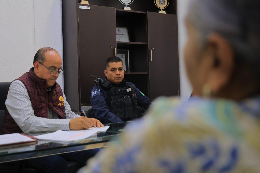 Salamanca, Gto; 17 de abril de 2026.- Dando seguimiento a la solicitud presentada por comerciantes del tianguis Las Joyas en materia de seguridad, la Dirección de Fiscalización y Control, en coordinación con la Comisaría General de Seguridad Pública, sostuvo una reunión con un grupo de comerciantes con el objetivo de atender de manera directa sus peticiones y fortalecer las condiciones de seguridad en su espacio de trabajo.