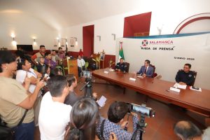 Salamanca, Gto; 12 de mayo de 2025.- Como parte de su compromiso con la seguridad y el bienestar de la ciudadanía, el presidente César Prieto presentó en rueda de prensa al nuevo Comisario de Seguridad Pública de Salamanca, Pedro Alberto Cortés Zavala, quien desempeñará un papel fundamental en materia de mantenimiento del orden público, supervisión de oficiales, implementación de políticas de seguridad, gestión de recursos y colaboración con otras dependencias.