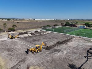 Salamanca, Gto; 24 de abril de 2026.- Como parte de los proyectos orientados a fomentar el desarrollo de hábitos saludables y el fortalecimiento de los lazos comunitarios, el presidente César Prieto, a través de la Comisión Municipal del Deporte (COMUDE) y la Dirección de Obra Pública, lleva a cabo la construcción de una nueva cancha para la práctica de futbol 7 y futbol bandera en las instalaciones de la Deportiva Norte.