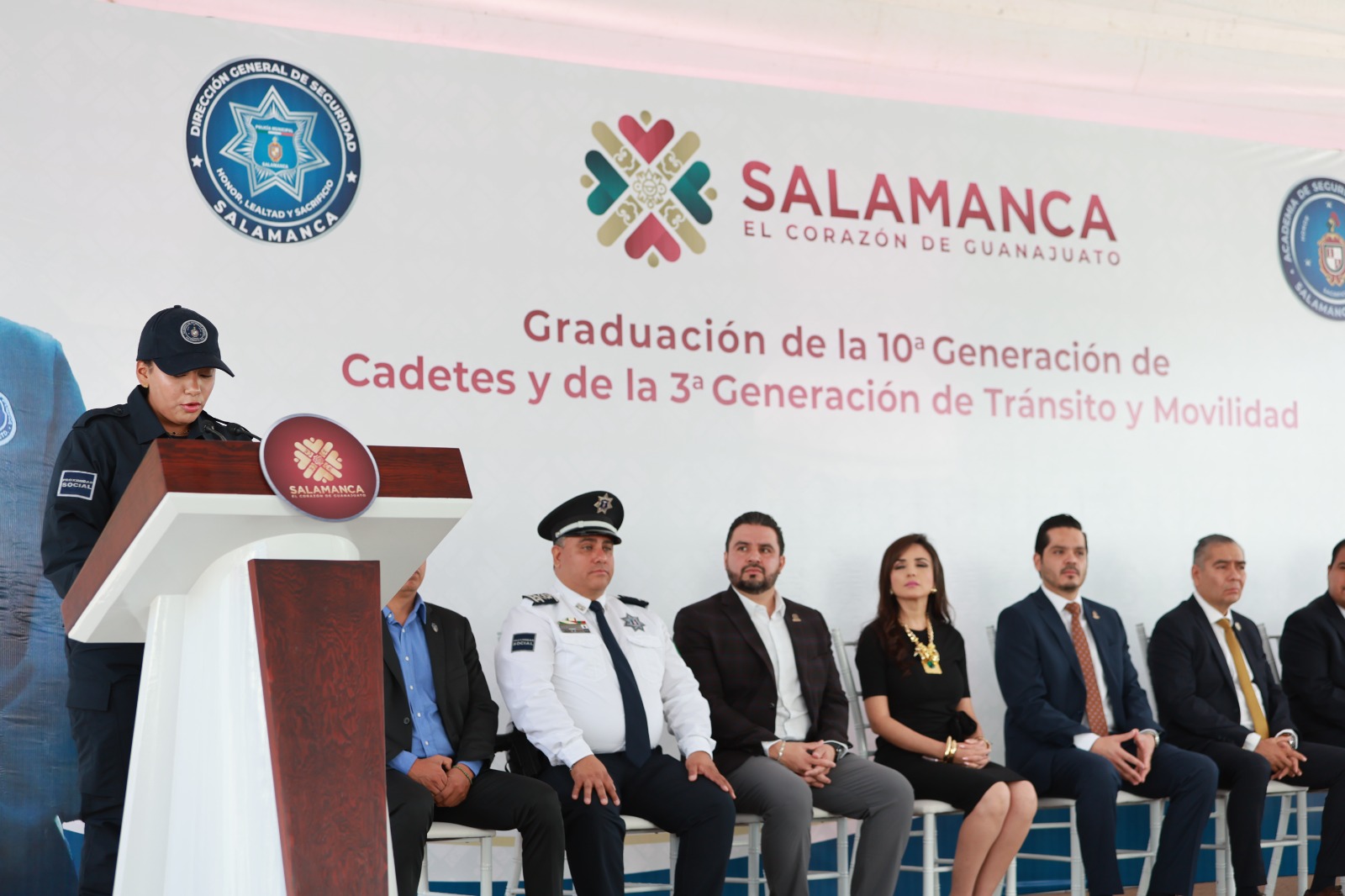 Por su parte, el director general de Seguridad Pública, Juan Pablo Ramírez Talavera, expresó, “hoy, Salamanca amanece más fuerte, porque detrás de los 37 graduados de hoy hay un compromiso firme, una rica historia y la voluntad decidida del presidente César Prieto y el Ayuntamiento para construir la paz en este municipio, a través de acciones concretas”. Ramírez Talavera también enfatizó la importancia de seguir promoviendo la profesionalización dentro de las corporaciones de seguridad.
