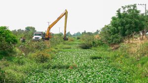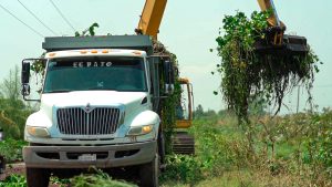 En coordinación con el Módulo de Salamanca del Diestrito de Riego 11, se continúan realizando labores de limpieza en los drenes para retirar el lirio acuático.