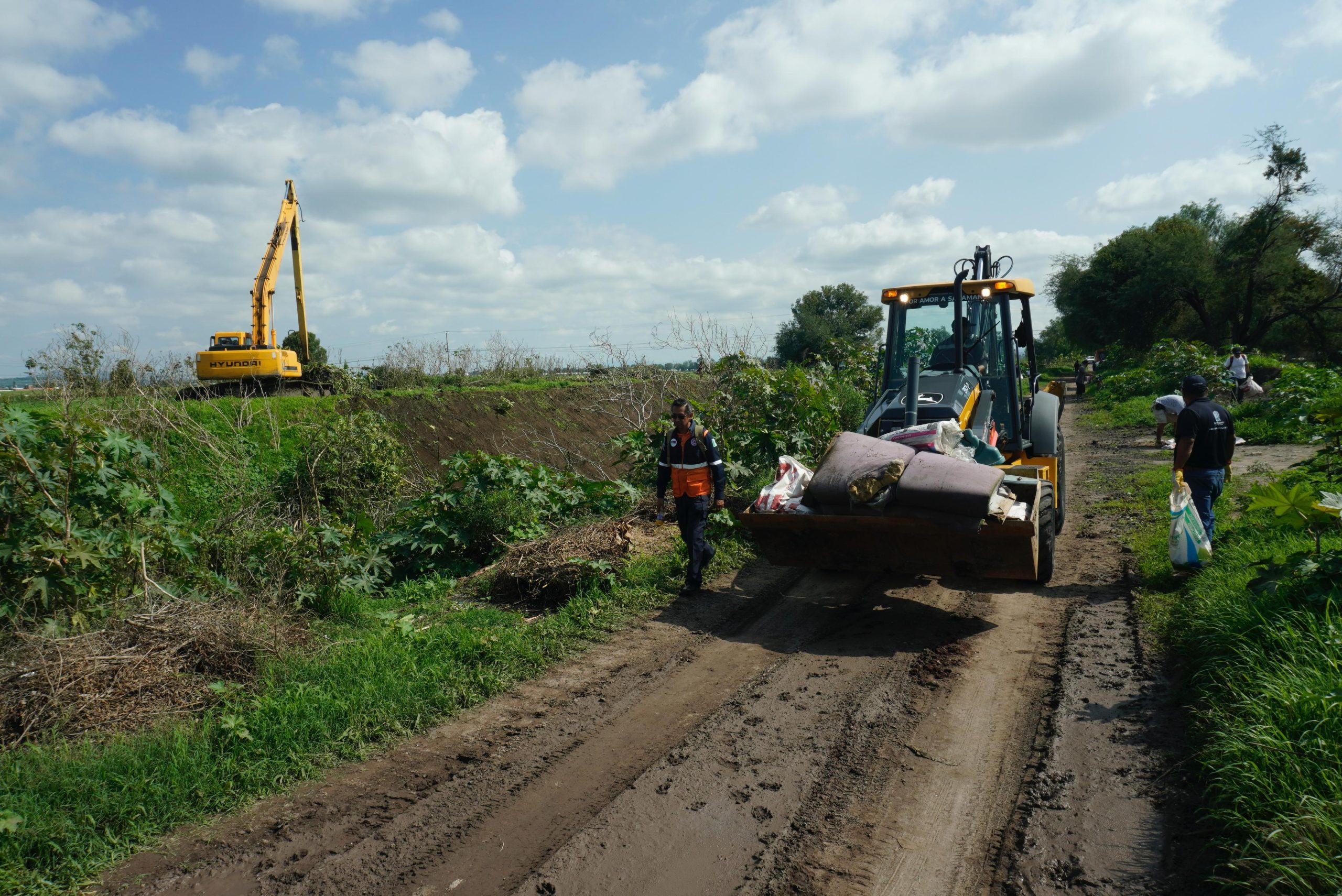 Durante esta intervención se empleó maquinaria pesada para realizar labores de desazolve y recolección de residuos sólidos a lo largo de las orillas del afluente.